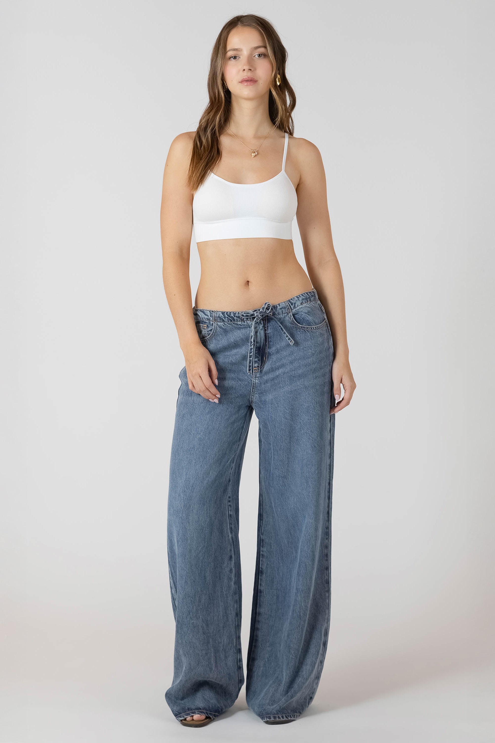 These wide-leg denim pants offer a softer, more fluid take on everyday denim. Designed with a lightweight feel and an easy drape, they sit comfortably at the waist with an adjustable drawstring for a flexible, personalized fit.